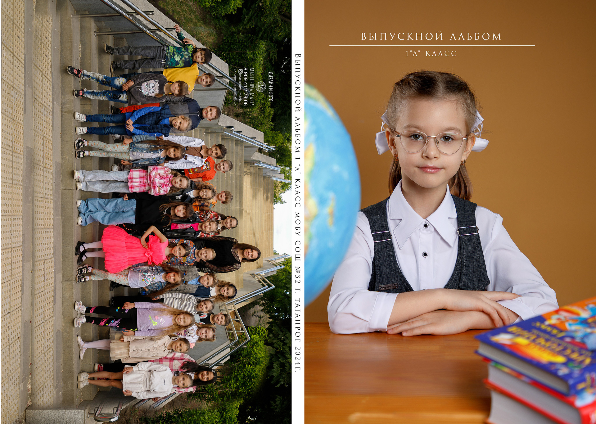 Альбом первоклассника — это 2 важная книга в истории ребенка. Минимальный формат — 2 разворота. Для 4 класса дизайны аналогичные. Что касается исполнения — можно выбрать разную наполняемость, от 2 разворотов, до персонального большого альбома, но необходимо сойтись во мнении всему классу. Каждый дополнительный разворот 800р.