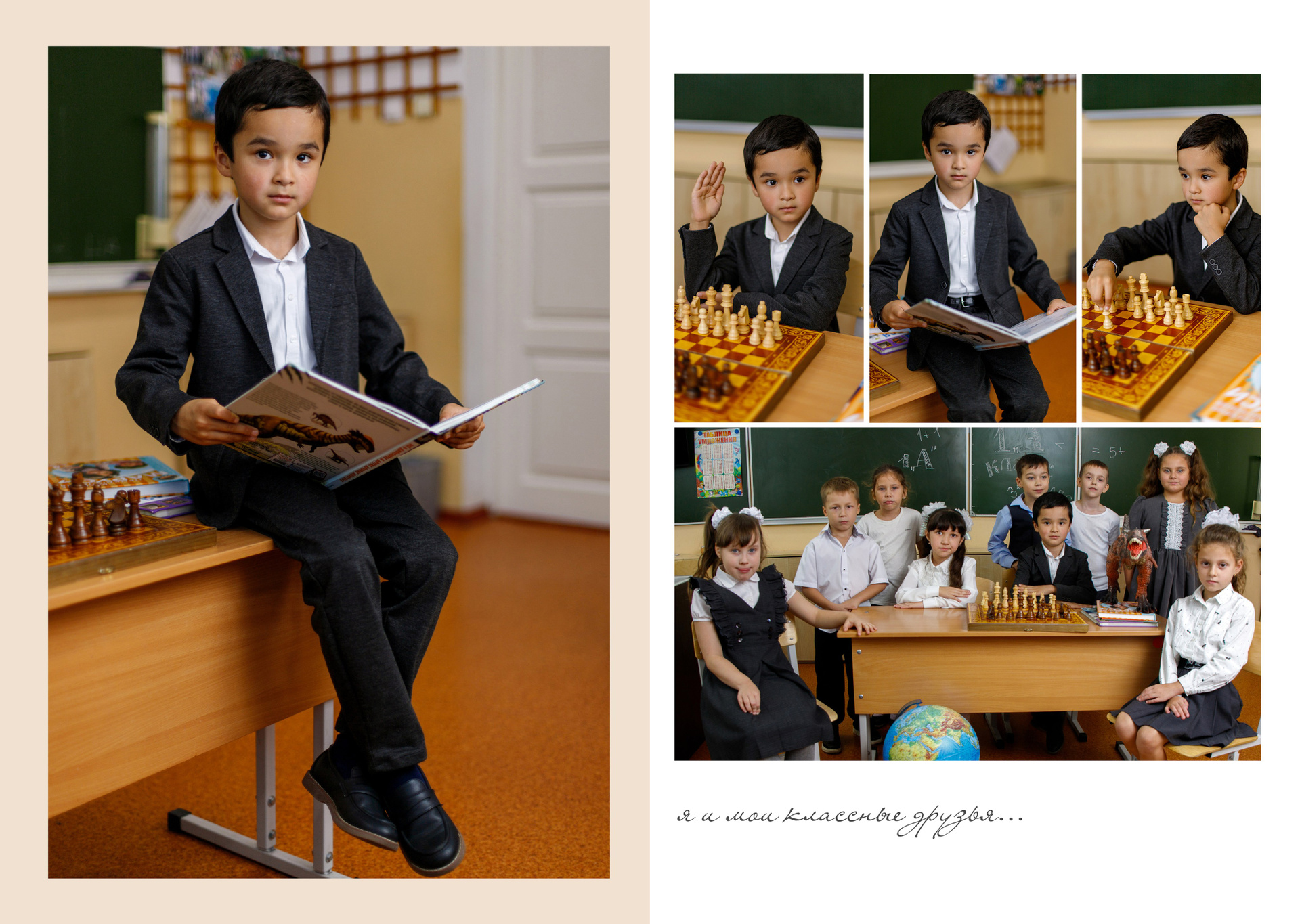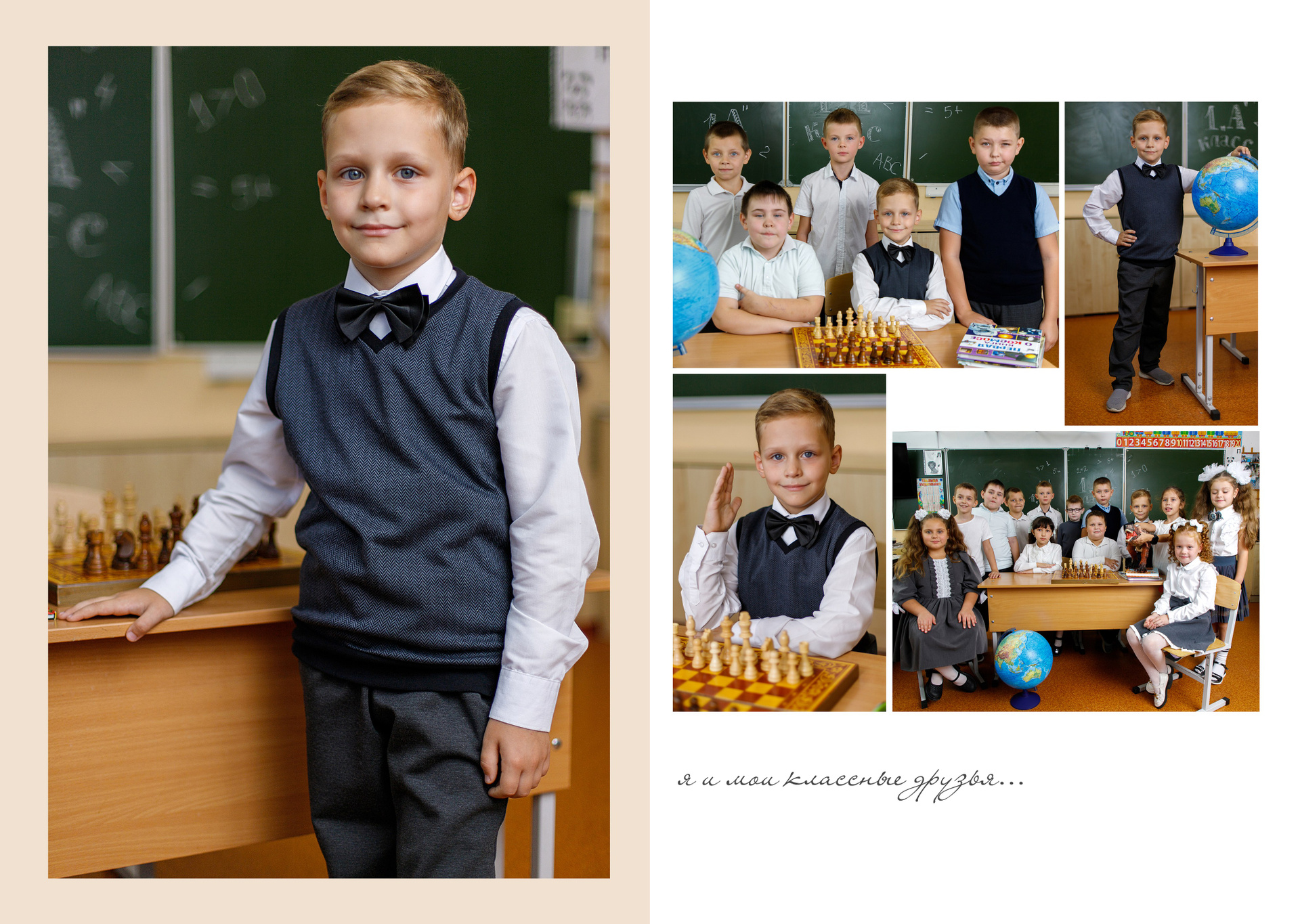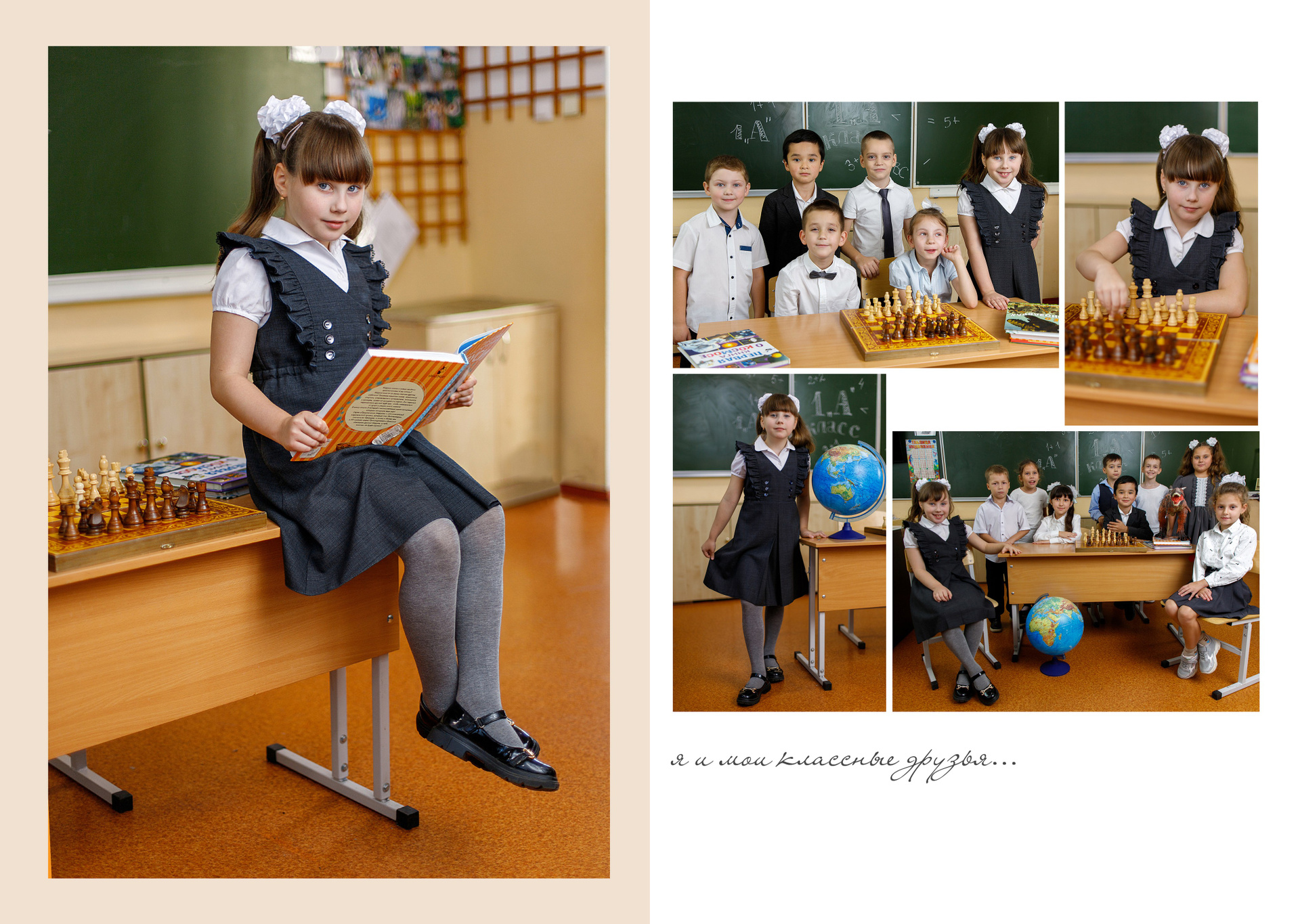 Это важный информационный блок, где расположены дети и классный руководитель. Портрет на виньетку берем со 2 стр. первого разворота (Портрет № 2). Важно указывать полные имена деток и тщательно проверять перед печатью правильность написания ФИО.
