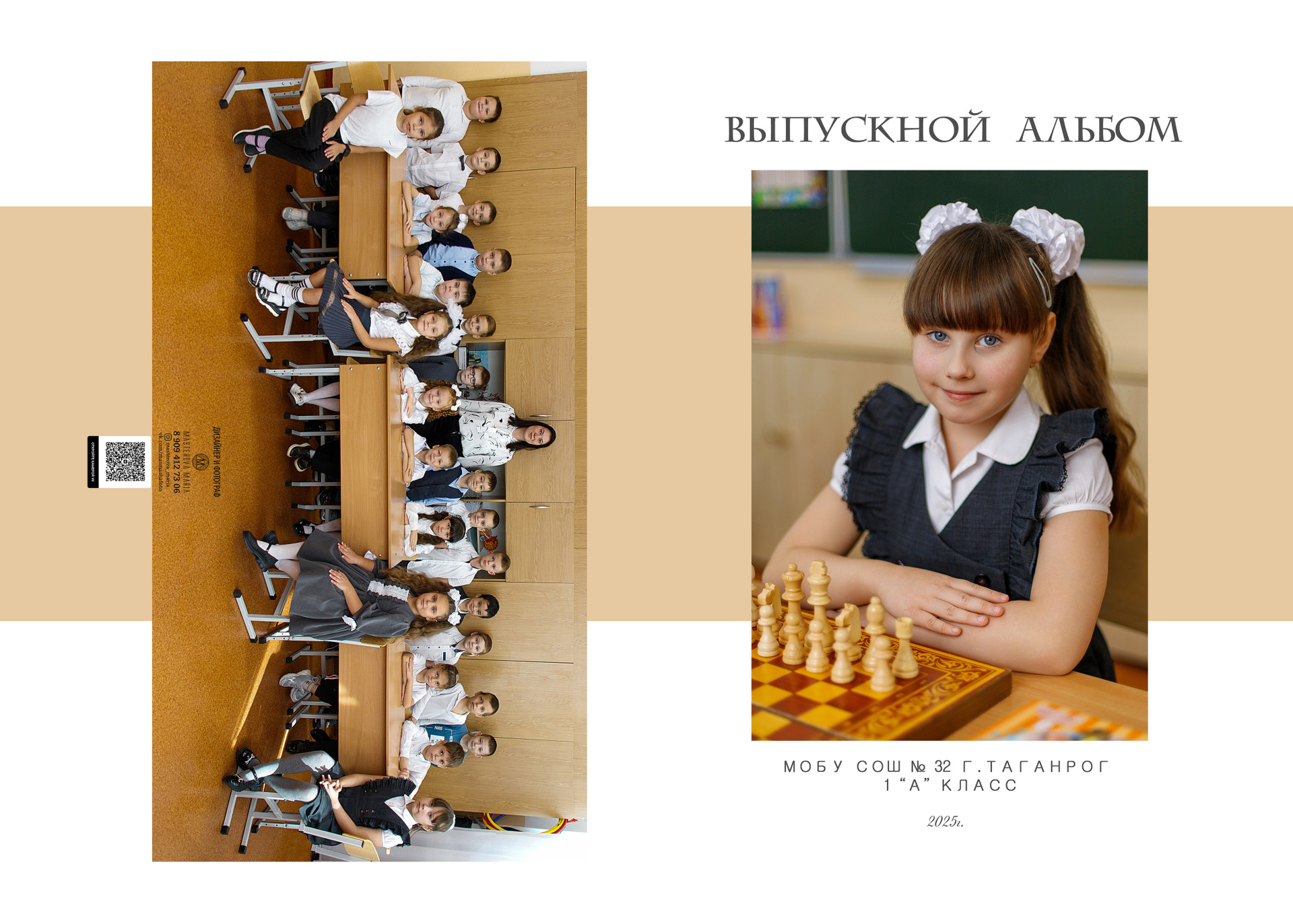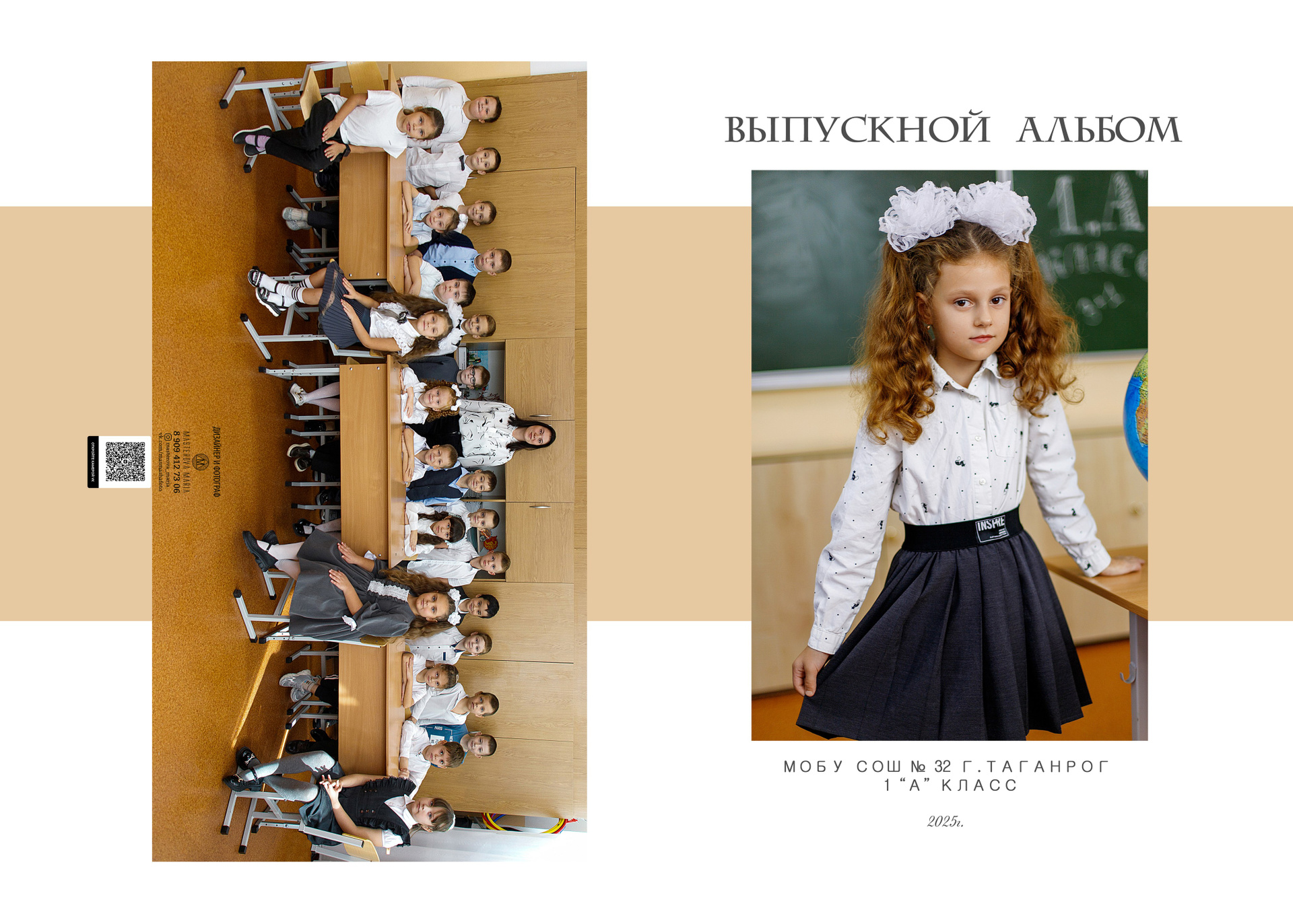 1 стр. — портрет № 2, 2 стр. — фото с ребенком, выбранные родителями. Матовая или глянцевая ламинация на выбор. Плотные страницы — основа пластик/картон.