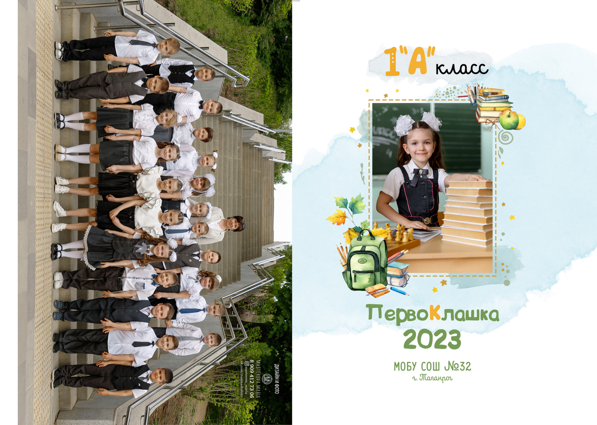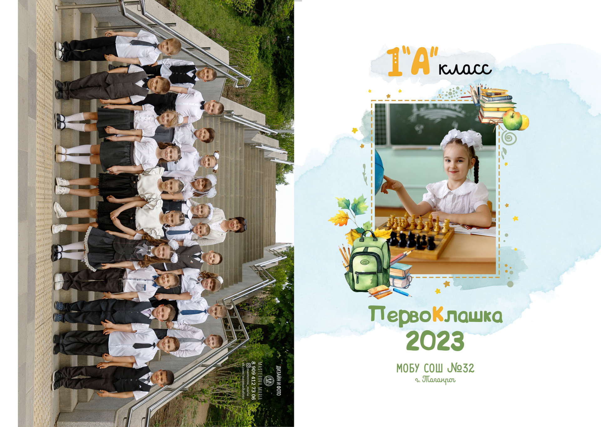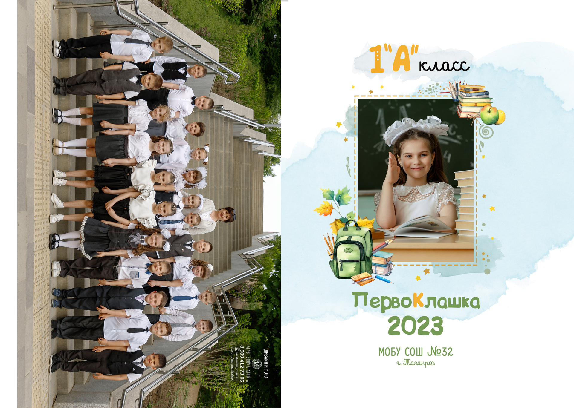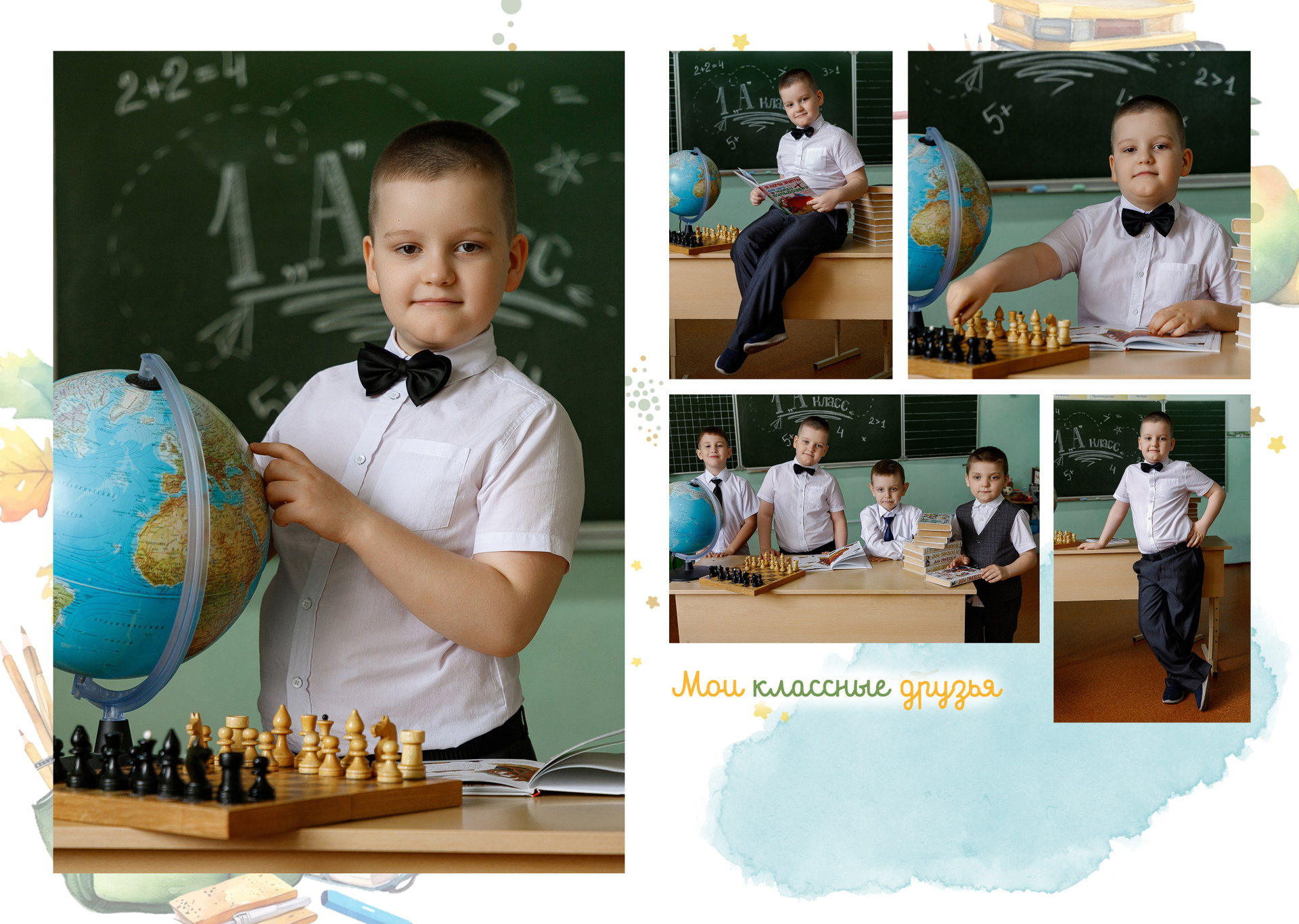 Это важный информационный блок, где расположены дети и классный руководитель. Портрет на виньетку берем со 2 стр. первого разворота (Портрет № 2). Важно указывать полные имена деток и тщательно проверять перед печатью правильность написания ФИО.